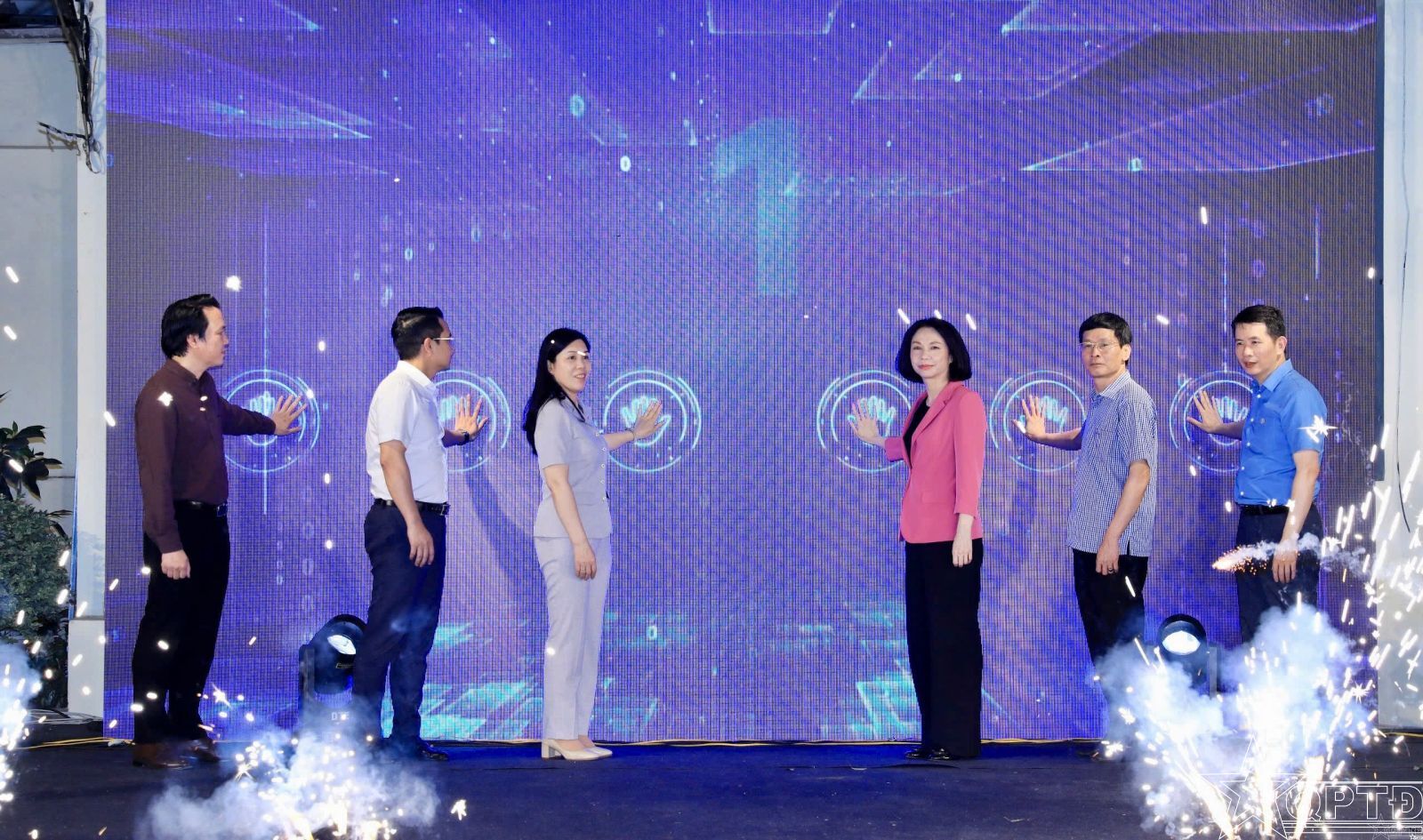Các đại biểu thực hiện nghi thức khai trương Cổng thông tin an toàn thực phẩm Hà Nội.