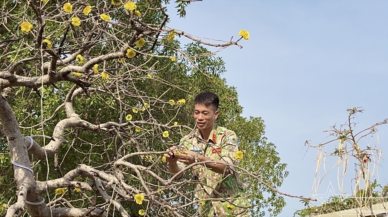 “Lính Công binh bọn em tay toàn bùn đất với dầu mỡ, ngồi cắt dán mấy bông hoa giấy này cũng lóng ngóng lắm. Bên này cằn cỗi làm gì có hoa thật, nhưng tự làm xong ngắm nghía lại thấy rực rỡ, thấy có không khí Tết để anh em vơi bớt nỗi nhớ nhà”, Trung úy Nguyễn Trung Kiên, Phân đội Hậu cần - Bảo đảm chia sẻ.