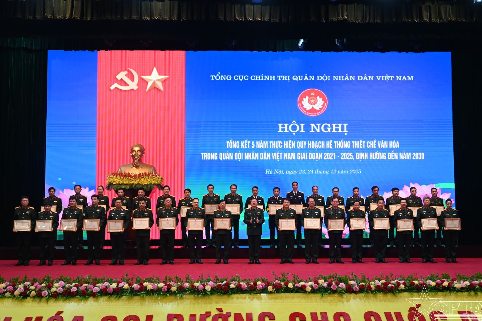 Nhân dịp này, Bộ trưởng Bộ Quốc phòng và Chủ nhiệm Tổng cục Chính trị đã trao tặng Bằng khen cho 83 tập thể và 91 cá nhân có thành tích xuất sắc trong thực hiện Quy hoạch hệ thống thiết chế văn hóa trong Quân đội nhân dân Việt Nam, giai đoạn 2021-2025, định hướng đến năm 2030.