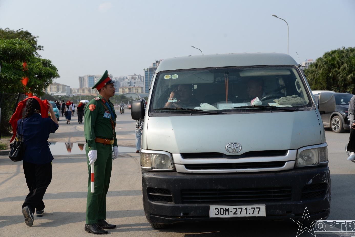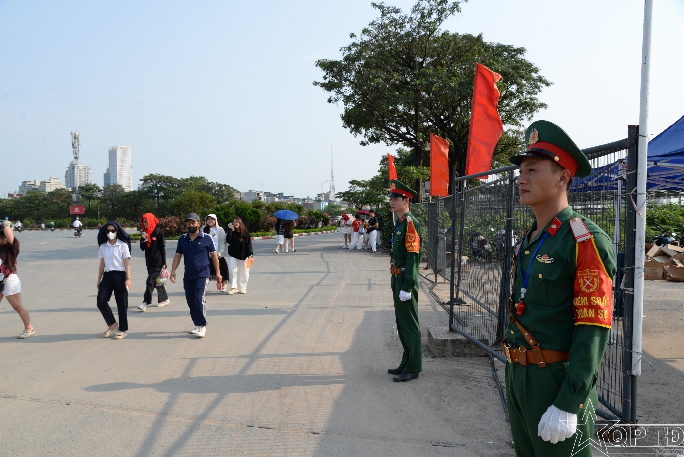 Các chiến sĩ Tiểu đoàn Vệ binh-Kiểm soát quân sự phối hợp bảo đảm an ninh khu vực tổ chức.
