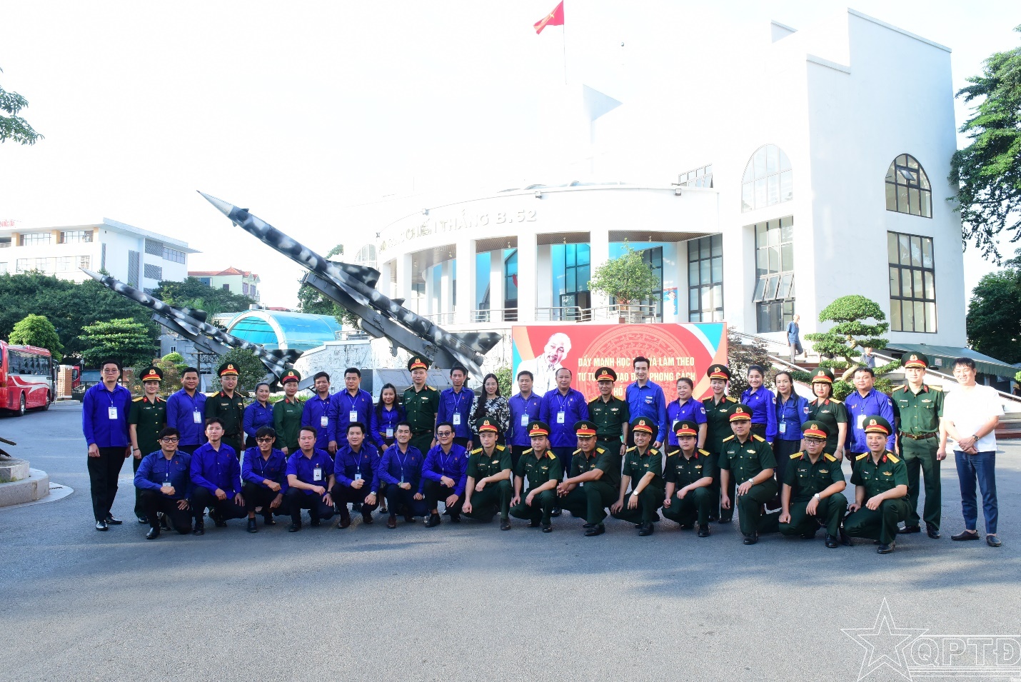 Đại biểu tuổi trẻ hai đơn vị của hai nước chụp ảnh lưu niệm.