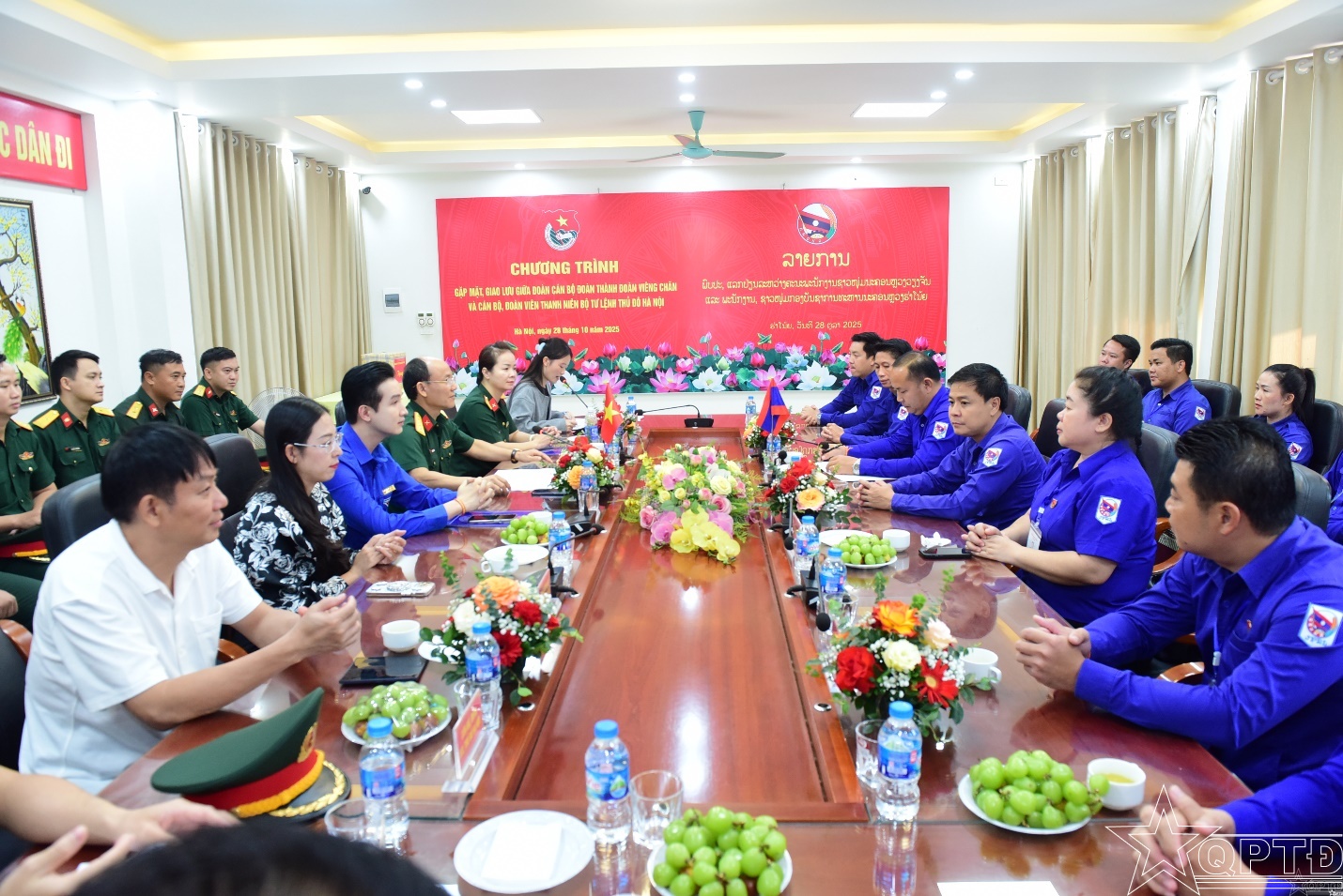 QPTĐ-Chiều 28-10, Đoàn Công tác lớp bồi dưỡng kỹ năng, nghiệp vụ công tác Đoàn cho cán bộ Thành đoàn Viêng Chăn (Lào) khóa 4 đang học tập tại Việt Nam đã có buổi gặp mặt, giao lưu với cán bộ, đoàn viên thanh niên Bộ Tư lệnh Thủ đô Hà Nội.