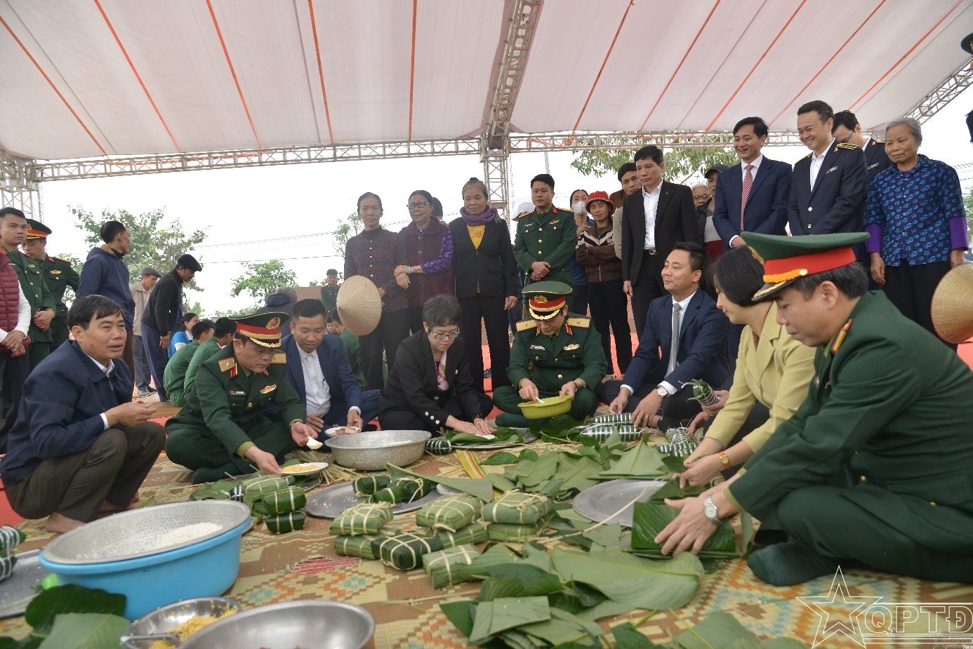 Hội thi gói bánh chưng thu hút đông đảo cán bộ, chiến sĩ và nhân dân tham gia.