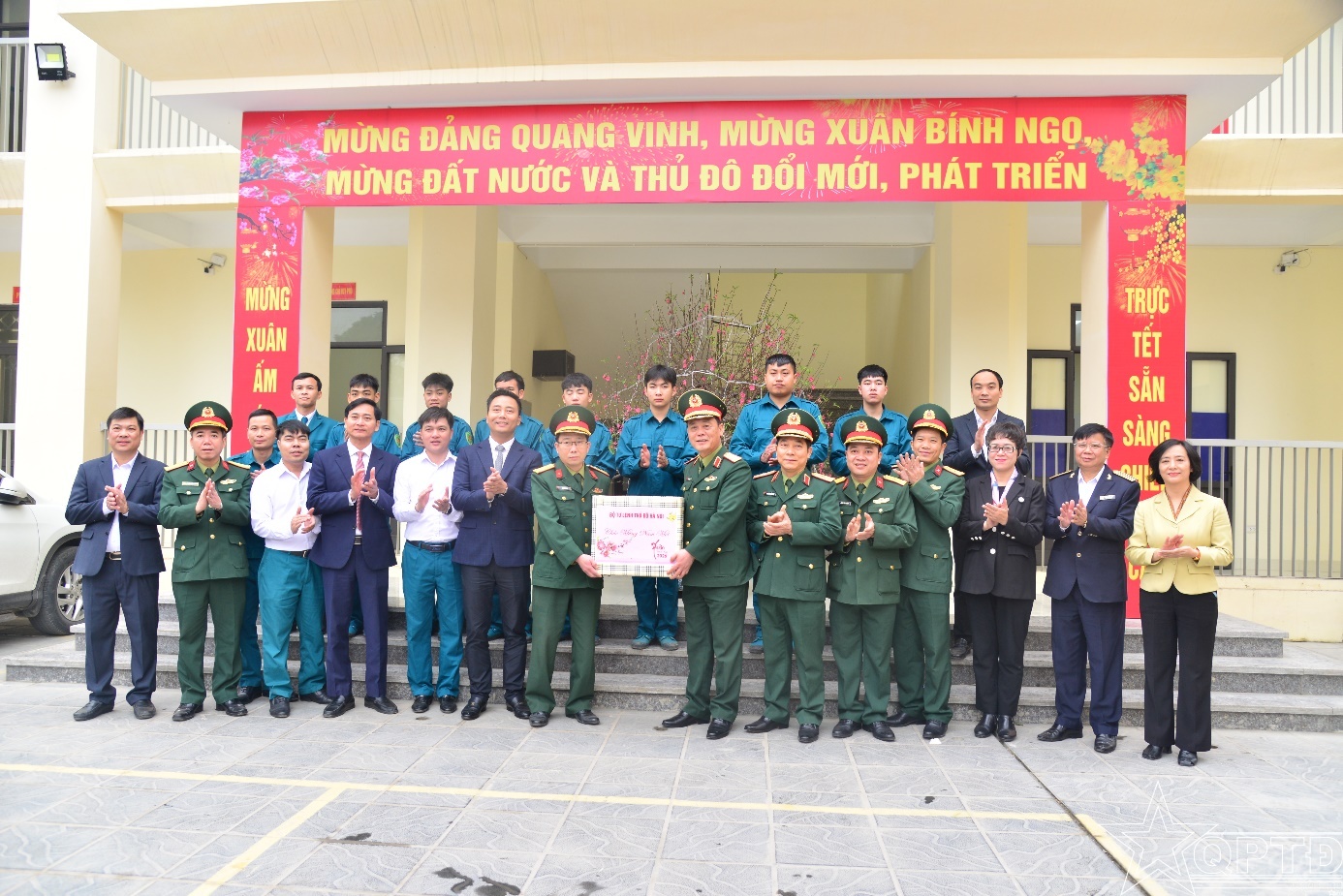 Thủ trưởng Bộ Tư lệnh Thủ đô Hà Nội chúc Tết, tặng quà cán bộ, chiến sĩ Ban CHQS xã Minh Châu.