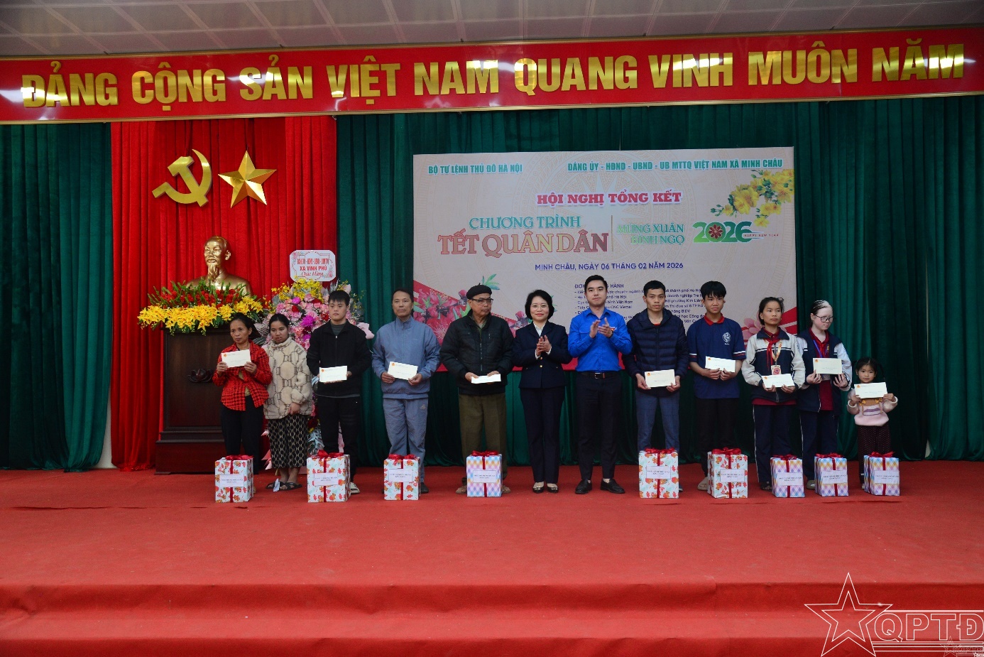 QPTĐ-Trong 5 ngày (từ ngày 3 đến 7/2), Bộ Tư lệnh Thủ đô Hà Nội đã cùng với các ban, ngành, đoàn thể địa phương xã Minh Châu, thành phố Hà Nội, các tổ chức chính trị- xã hội của Thủ đô và các doanh nghiệp, đơn vị quân đội đứng chân trên địa bàn đã tổ chức chương trình “Tết Quân dân” nhân dịp Tết Bính Ngọ năm 2026 với nhiều hoạt động có ý nghĩa thiết thực.