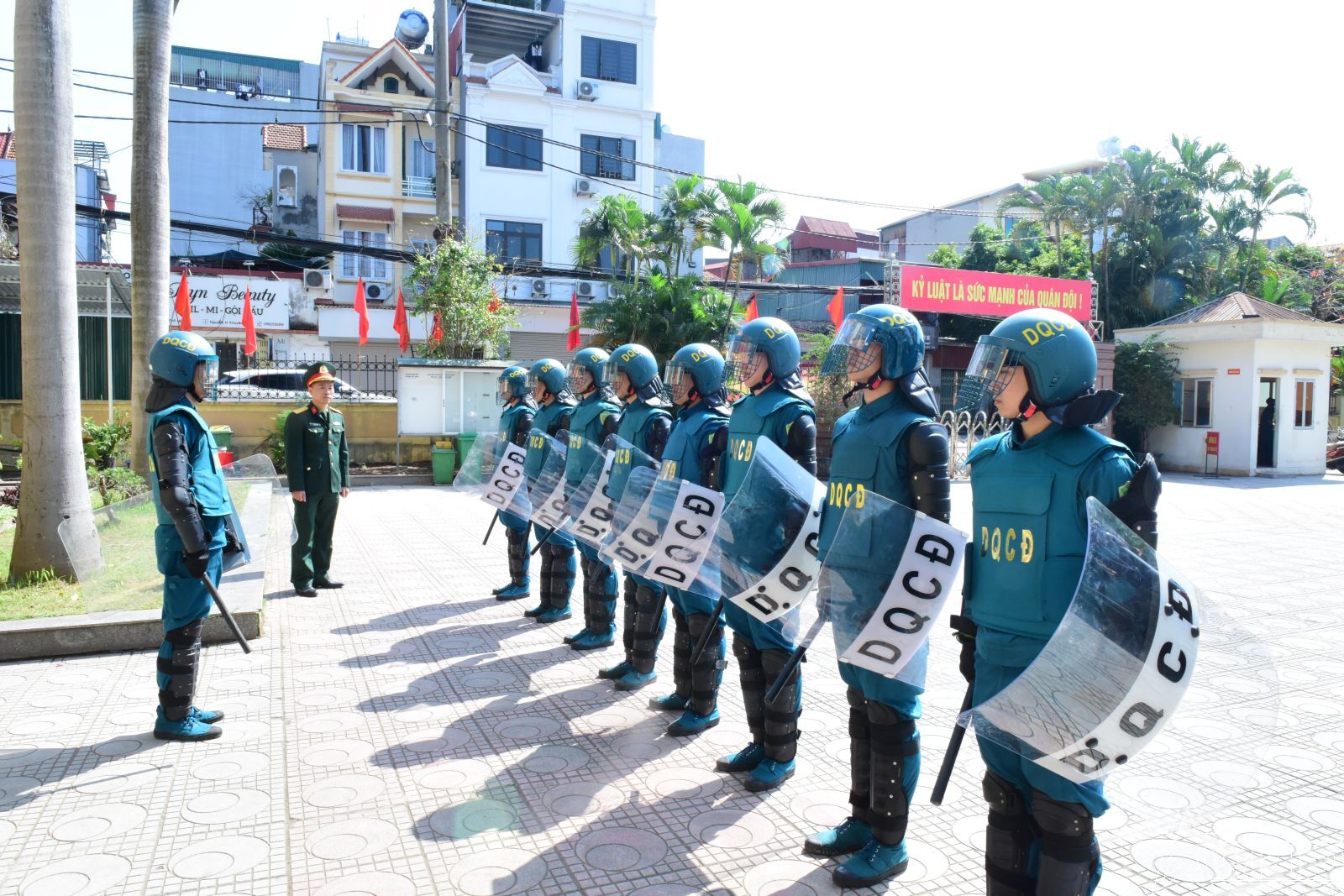 Bên cạnh đó, Ban CHQS phường vẫn dành thời gian duy trì luyện tập nâng cao khả năng sẵn sàng chiến đấu. Trên thao trường, hình ảnh những chiến sĩ dân quân trong trang phục dân quân cơ động, trang bị dùi cui, lá chắn, thực hiện các bài tập thực binh xử lý tình huống giả định cho thấy một tinh thần sẵn sàng chiến đấu cao. Đồng chí Đinh Gia Thái Đức, chiến sĩ Dân quân thuộc Trung đội dân quân thường trực chia sẻ: “Khoác lên mình bộ quân phục trong những ngày này, tôi thấy vừa tự hào, vừa áp lực. Trách nhiệm của chúng tôi là tham gia bảo đảm an ninh chính trị tại cơ sở, bảo vệ quyền làm chủ của Nhân dân. Dù trực đêm hay tuần tra vất vả, nhưng nhìn thấy bà con nô nức đi xem danh sách cử tri trong yên bình, tôi cảm thấy sự đóng góp của mình là cực kỳ xứng đáng. Đó là tình yêu dành cho quê hương Việt Hưng mới”.