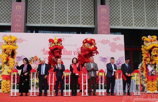 Các đại biểu cắt băng khai mạc trưng bày chuyên đề “Long Mã khai văn” mừng Xuân Bính Ngọ 2026.