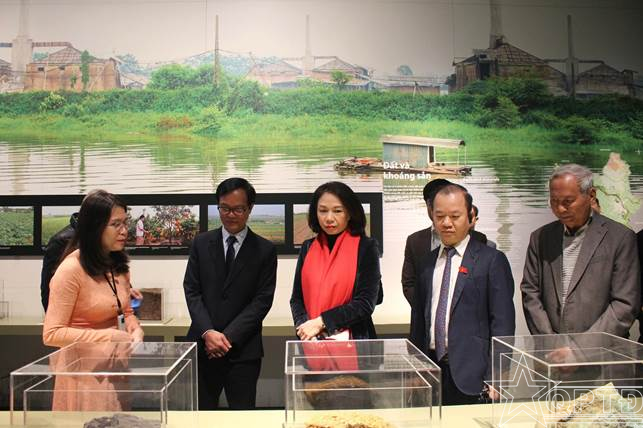 Các đại biểu tham quan không gian trưng bày tại Bảo tàng Hà Nội.