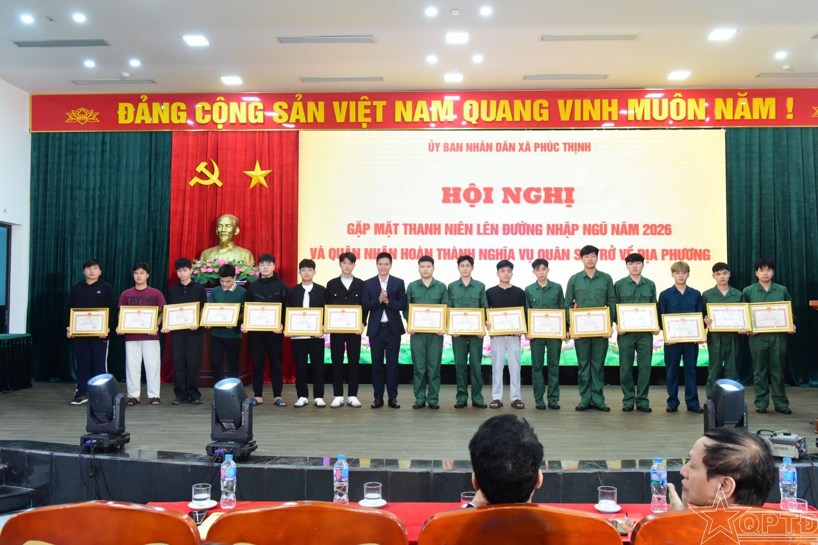 Cũng trong dịp Tết Nguyên đán vừa qua, một nét mới đầy ý nghĩa tại Phúc Thịnh là việc các thôn, khu dân cư và tổ dân phố đã tổ chức vinh danh trang trọng các công dân lên đường nhập ngũ ngay tại các Lễ hội làng truyền thống. Bên cạnh đó, Uỷ ban MTTQ Việt Nam xã Phúc Thịnh đã tổ chức Hội nghị gặp mặt, thông qua các hoạt động giao lưu văn nghệ, trao đổi thông tin và kinh nghiệm quý báu giữa các bác Cựu chiến binh, quân nhân xuất ngũ với những công dân chuẩn bị lên đường nhập ngũ. Những câu chuyện thực tế về kỷ luật và tình đồng chí, cùng sự động viên ân cần từ các tổ chức đoàn thể như Hội Phụ nữ, Đoàn Thanh niên đã trở thành điểm tựa tinh thần vững chắc, giúp các thanh niên không còn bỡ ngỡ, vững vàng ý chí.