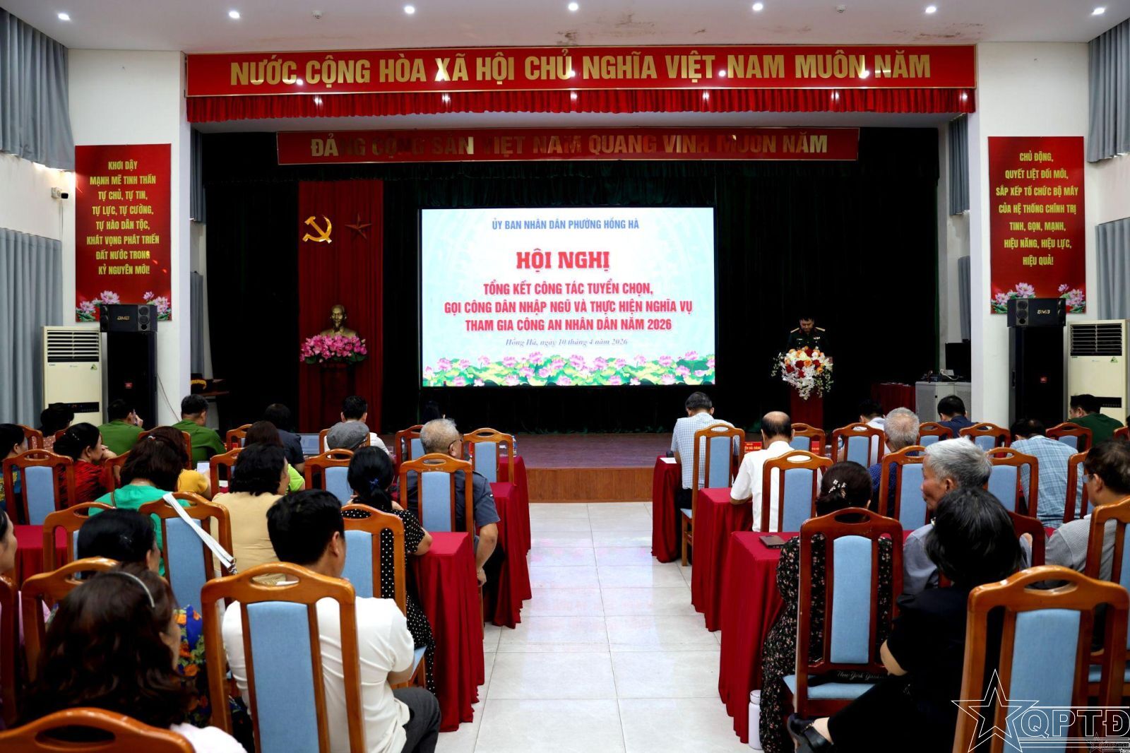 QPTĐ-Chiều 10/4, UBND phường Hồng Hà tổ chức Hội nghị tổng kết công tác tuyển chọn, gọi công dân nhập ngũ và thực hiện nghĩa vụ tham gia Công an nhân dân năm 2026.