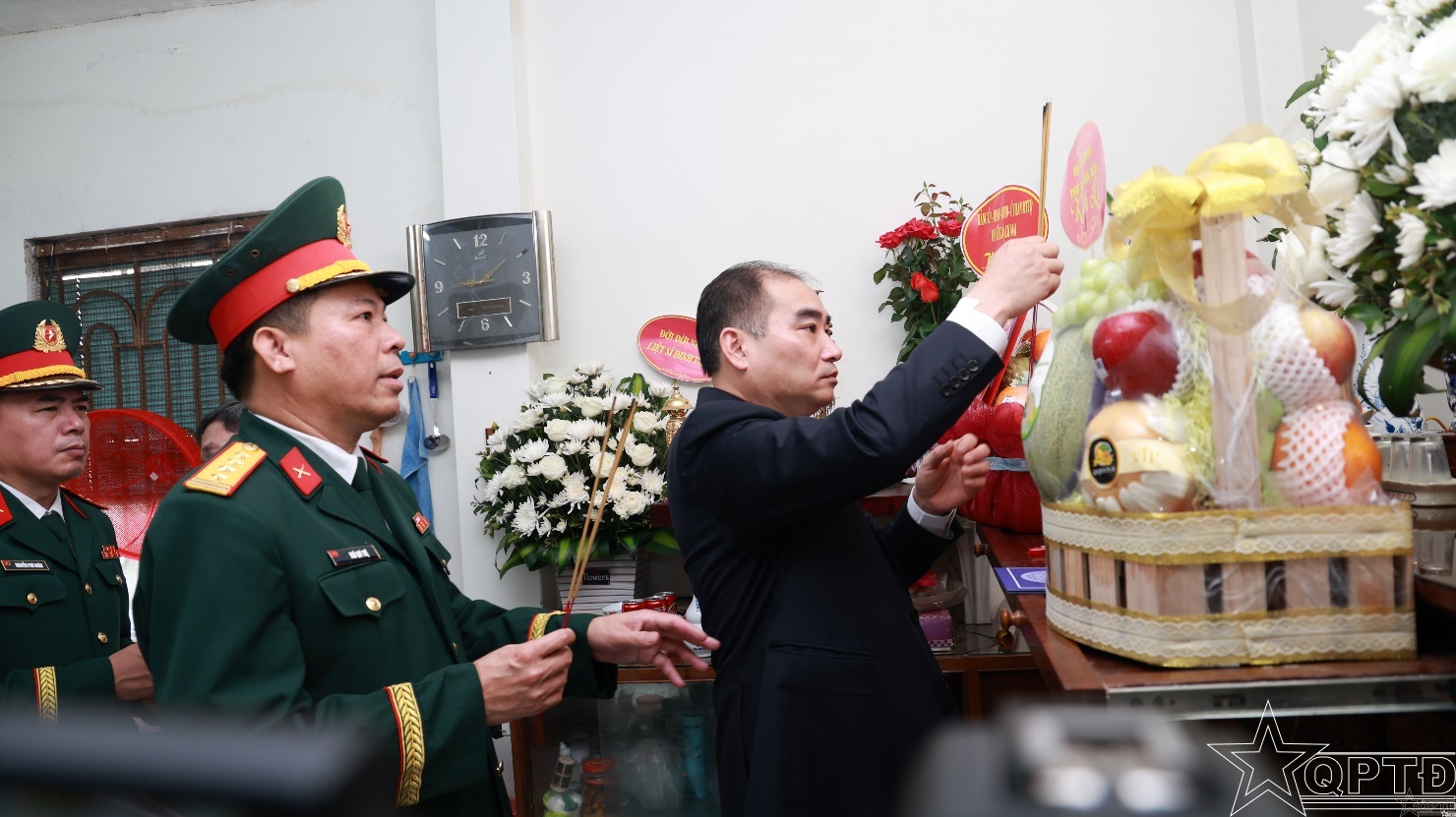 Các đại biểu thắp hương tại gia đình Liệt sĩ Đinh Văn Vũ.