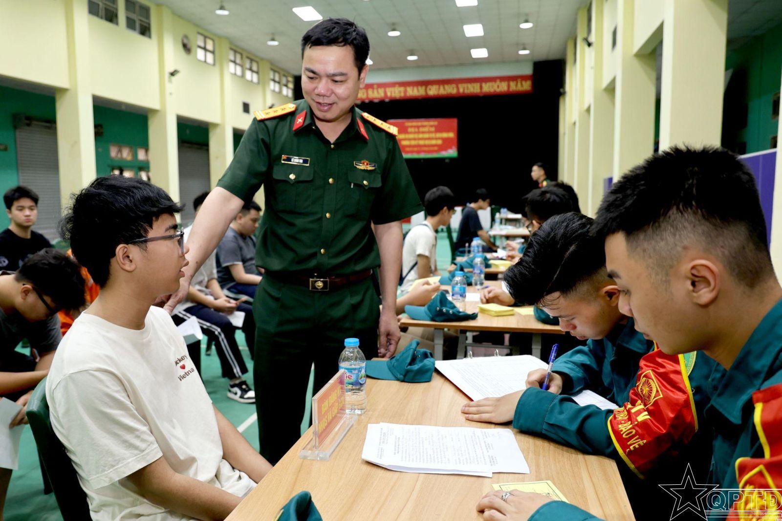 Ban CHQS phường Hồng Hà hướng dẫn công dân đăng ký NVQS lần đầu.