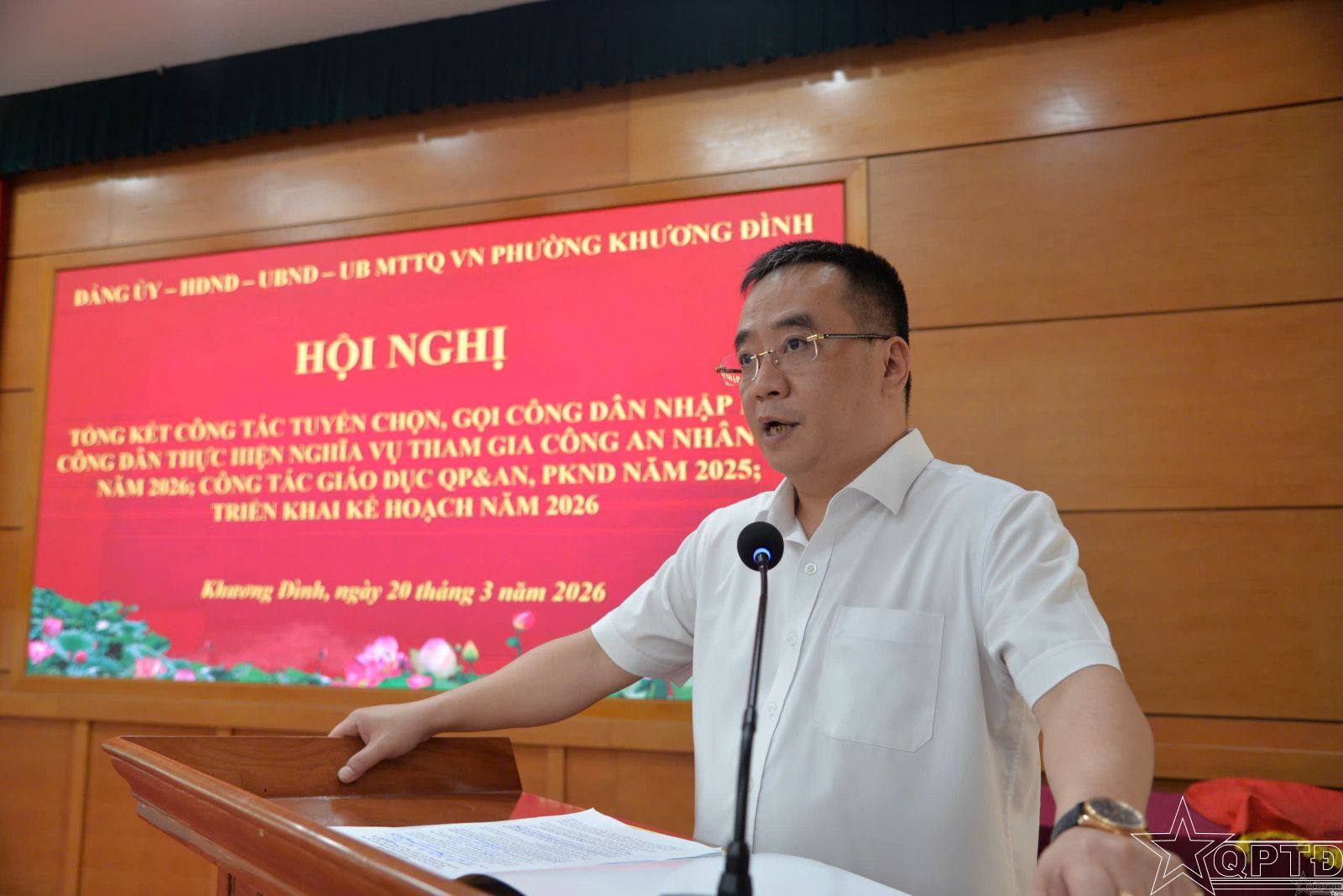 QPTĐ-Sáng 20-3, phường Khương Đình tổ chức tổng kết công tác tuyển chọn, gọi công dân nhập ngũ và thực hiện nghĩa vụ tham gia Công an nhân dân năm 2026; công tác giáo dục quốc phòng- an ninh, công tác phòng không nhân dân năm 2025 và triển khai nhiệm vụ năm 2026.