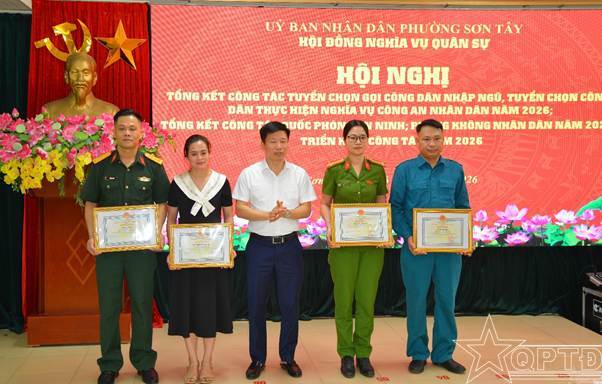 QPTĐ-Chiều 16-4, UBND phường Sơn Tây tổ chức Hội nghị tổng kết công tác tuyển chọn, gọi công dân nhập ngũ và thực hiện nghĩa vụ tham gia Công an nhân dân năm 2026; tổng kết công tác giáo dục quốc phòng và an ninh (QP&AN), công tác phòng không nhân dân (PKND) năm 2025.