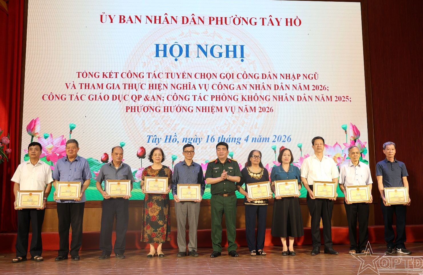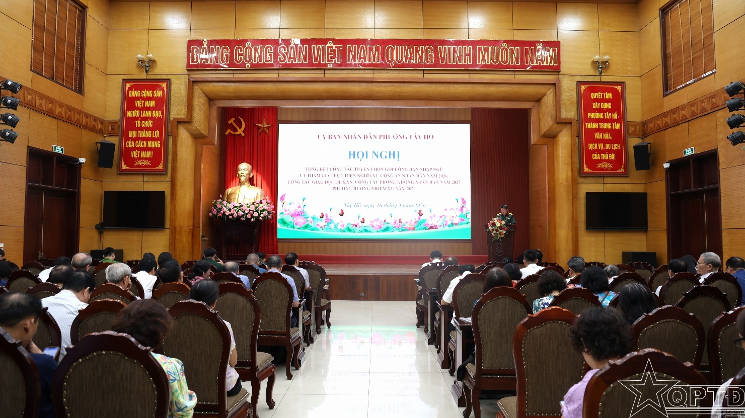 QPTĐ-Sáng 16-4, UBND phường Tây Hồ tổ chức Hội nghị Tổng kết công tác tuyển chọn, gọi công dân nhập ngũ và thực hiện nghĩa vụ tham gia Công an nhân dân năm 2026; công tác giáo dục quốc phòng và an ninh (QP&AN), công tác phòng không nhân dân (PKND) năm 2025.