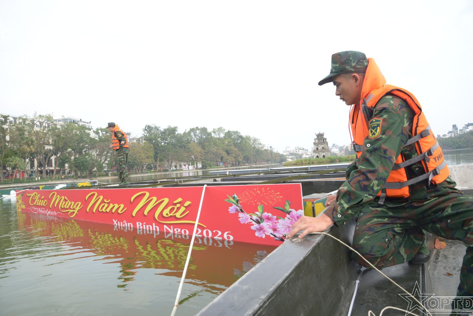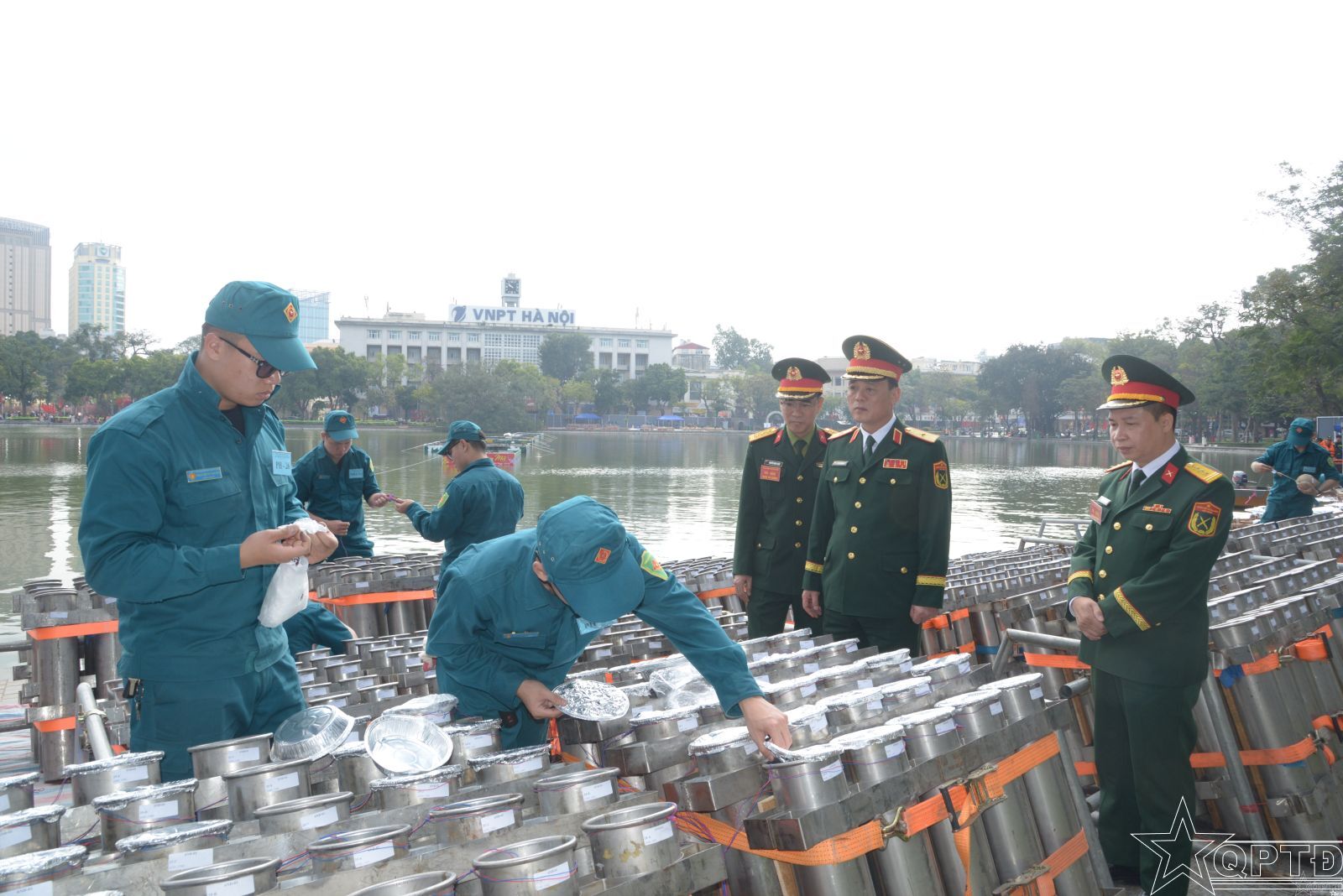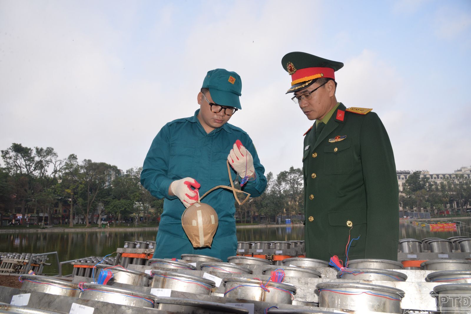 Thiếu tướng Đào Văn Nhận, Ủy viên Ban Thường vụ Thành ủy, Tư lệnh Bộ Tư lệnh thăm, động viên lực lượng tham gia thực hiện nhiệm vụ bắn pháo hoa của phường Hoàn Kiếm.