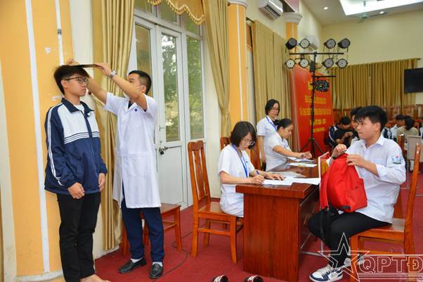 Lực lượng y tế xã kiểm tra tiêu chuẩn nam công dân tuổi 17 đăng ký NVQS lần đầu.