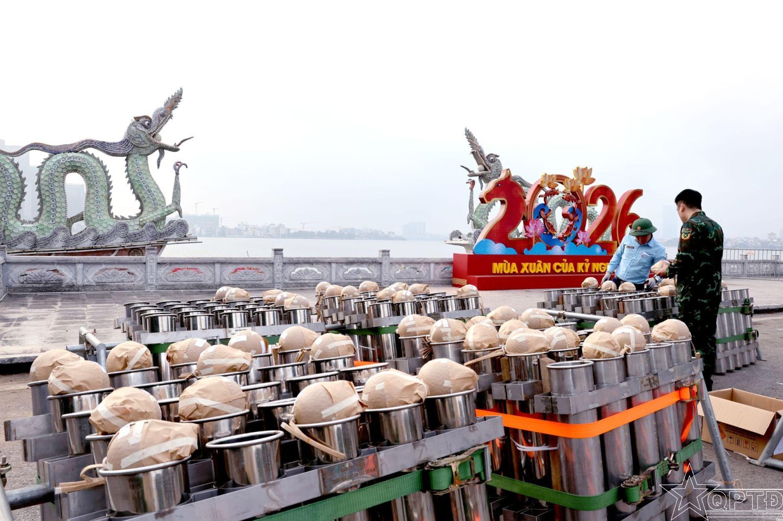 Theo đó, tại điểm bắn pháo hoa ở khu vực vườn hoa Lạc Long Quân (phường Tây Hồ) được bố trí 700 giàn pháo hoa tầm cao, 60 giàn tầm thấp và 30 giàn hỏa thuật. Để thực hiện nhiệm vụ, đơn vị đã huy động hơn 120 cán bộ, chiến sĩ phối hợp cùng Công an phường, lực lượng dân quân tự vệ và dân quân cơ động triển khai lắp đặt pháo hoa tầm cao theo kế hoạch. Toàn bộ quá trình được thực hiện đúng quy trình, tuân thủ nghiêm các yêu cầu an toàn, nhận được sự đồng thuận của chính quyền địa phương và người dân.