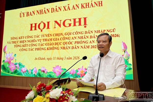 QPTĐ-Sáng 31-3, xã An Khánh tổ chức hội nghị tổng kết công tác tuyển chọn, gọi công dân nhập ngũ và thực hiện nghĩa vụ Công an nhân dân năm 2026; tổng kết công tác giáo dục quốc phòng và an ninh (QP&AN), công tác phòng không nhân dân năm 2026; đồng thời triển khai phương hướng, nhiệm vụ năm 2027.