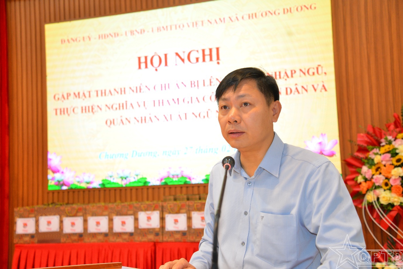 Phát biểu tại hội nghị, Chủ tịch UBND xã Chương Dương Từ Ngọc Thành ghi nhận và biểu dương tinh thần trách nhiệm, ý thức chấp hành nghiêm Luật Nghĩa vụ quân sự và Luật Công an nhân dân của các thanh niên trúng tuyển; đồng thời đánh giá cao sự đồng thuận, ủng hộ của các gia đình có con em lên đường nhập ngũ. Đồng chí Từ Ngọc Thành nhấn mạnh: Môi trường quân đội và công an là trường học lớn để rèn luyện bản lĩnh chính trị, ý thức tổ chức kỷ luật, tinh thần trách nhiệm và tác phong chính quy; mong muốn các thanh niên phát huy truyền thống quê hương, nhanh chóng hòa nhập đơn vị mới, đoàn kết, nỗ lực phấn đấu hoàn thành xuất sắc mọi nhiệm vụ được giao.