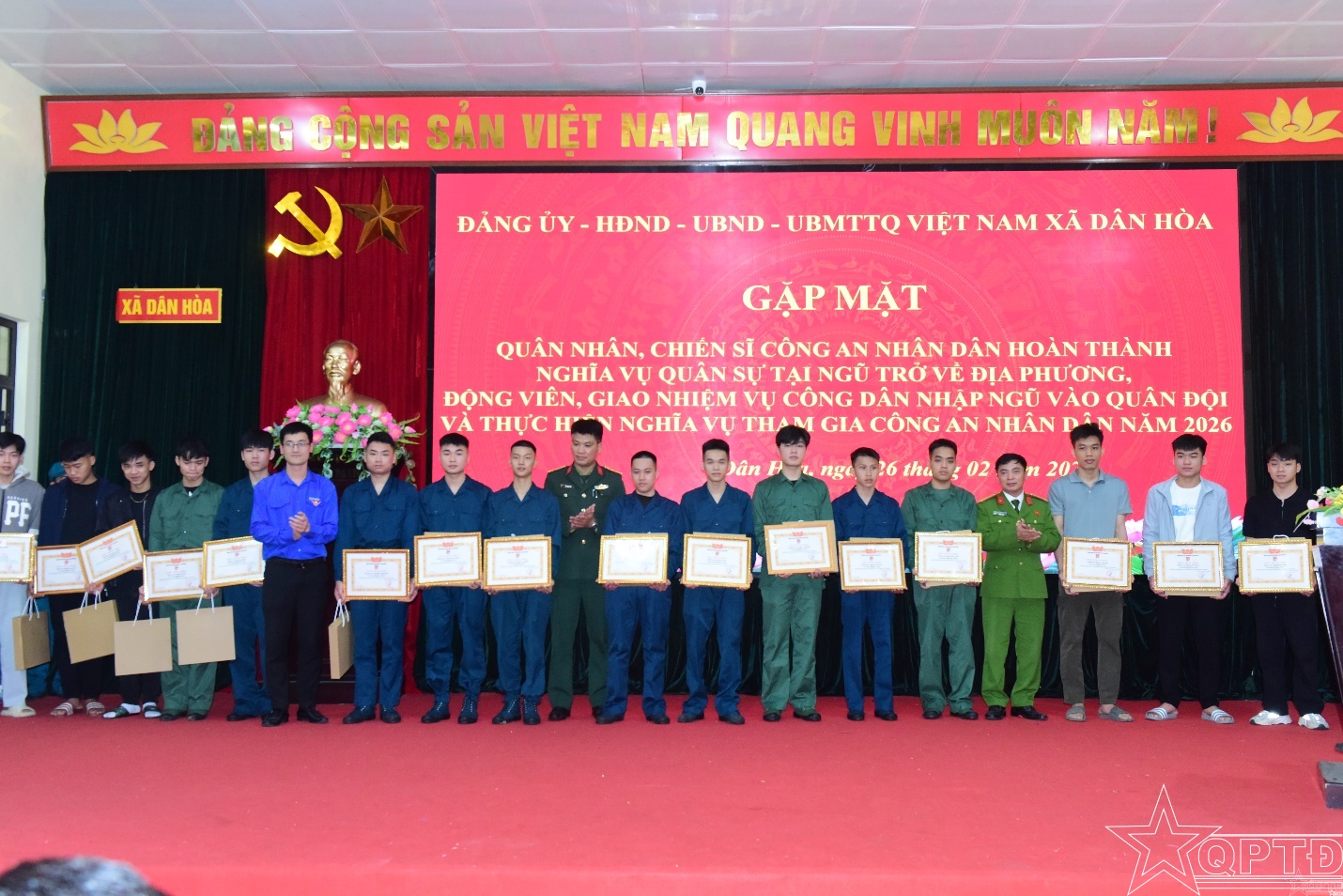 QPTĐ-Chiều 26/2, xã Dân Hòa tổ chức gặp mặt, động viên, tặng quà cho các quân nhân hoàn thành nghĩa vụ quân sự trở về địa phương và công dân chuẩn bị lên đường nhập ngũ năm 2026.