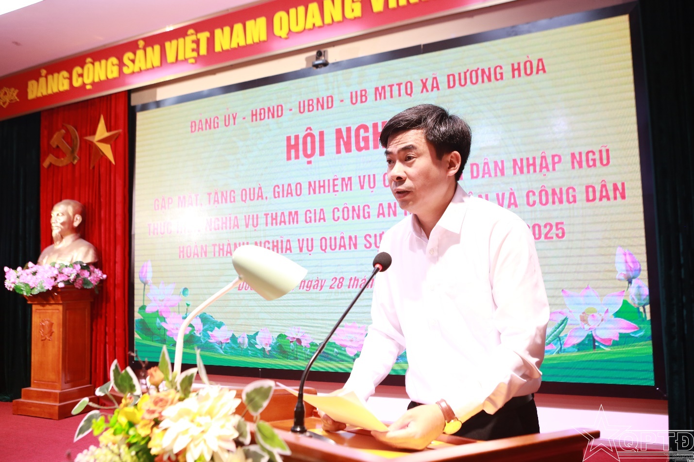 QPTĐ-Xã Dương Hoà đã tổ chức gặp mặt, tặng quà, giao nhiệm vụ cho công dân nhập ngũ, thực hiện nghĩa vụ tham gia Công an nhân dân và công dân hoàn thành nghĩa vụ quân sự, công an năm 2026.