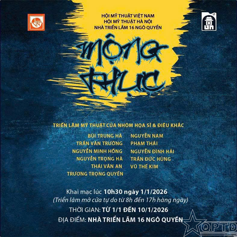 QPTĐ-Trong không khí hân hoan của những ngày đầu năm mới 2026, Hội Mỹ thuật Việt Nam trân trọng giới thiệu triển lãm mỹ thuật với chủ đề “Mộng Thực”. Đây được xem là món quà nghệ thuật đặc sắc dành tặng công chúng Thủ đô ngay trong dịp Tết Dương lịch. “Mộng Thực” không chỉ là một cuộc trưng bày tác phẩm thông thường mà còn là không gian gặp gỡ của 11 tâm hồn nghệ sĩ với những góc nhìn và cảm xúc riêng biệt. Tại đây, ranh giới giữa thực tại và giấc mơ được xóa nhòa, nhường chỗ cho những ý tưởng sáng tạo bay bổng và tự do.
