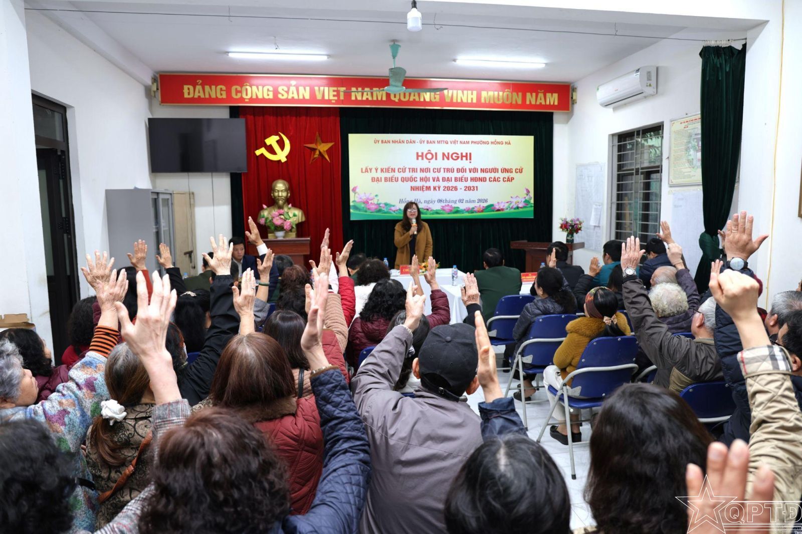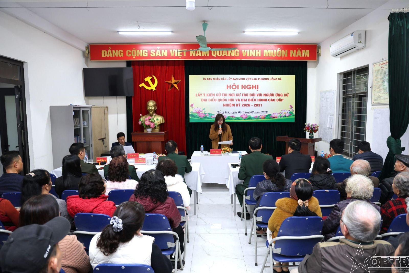 QPTĐ-Sáng 8-2, UBND, Ủy ban MTTQ Việt Nam phường Hồng Hà (thành phố Hà Nội) đã tổ chức Hội nghị lấy ý kiến nhận xét và tín nhiệm của cử tri nơi cư trú đối với người ứng cử đại biểu Quốc hội khoá XVI (nhiệm kỳ 2026-2031), đại biểu HĐND các cấp nhiệm kỳ 2026-2031.